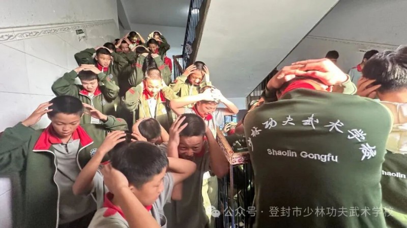 演练前,各班教练通过主题班会,详细讲解了防空警报识别、疏散逃生路线、灭火器使用方法及火灾自救技巧,让每位同学都清楚“做什么、怎么做、往哪跑”。随着第一声防空警报响起,演练正式开始。同学们迅速弯腰,按照预定路线快速有序撤离至训练场指定安全区域,全程无推挤、无喧哗,并安全全员疏散。