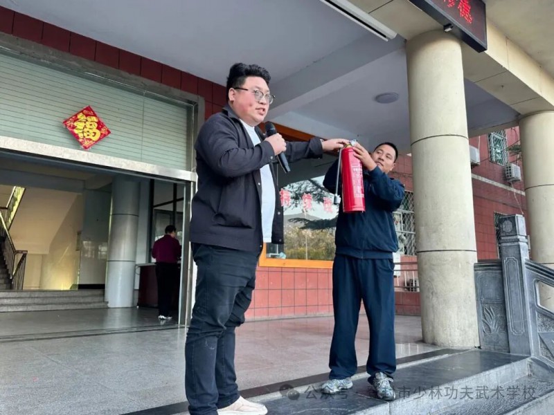 疏散集结后,安全办主任薛明新现场演示了干粉灭火器的“提、拔、握、压”操作步骤,并邀请学生代表上台实操,亲身体验灭火过程。